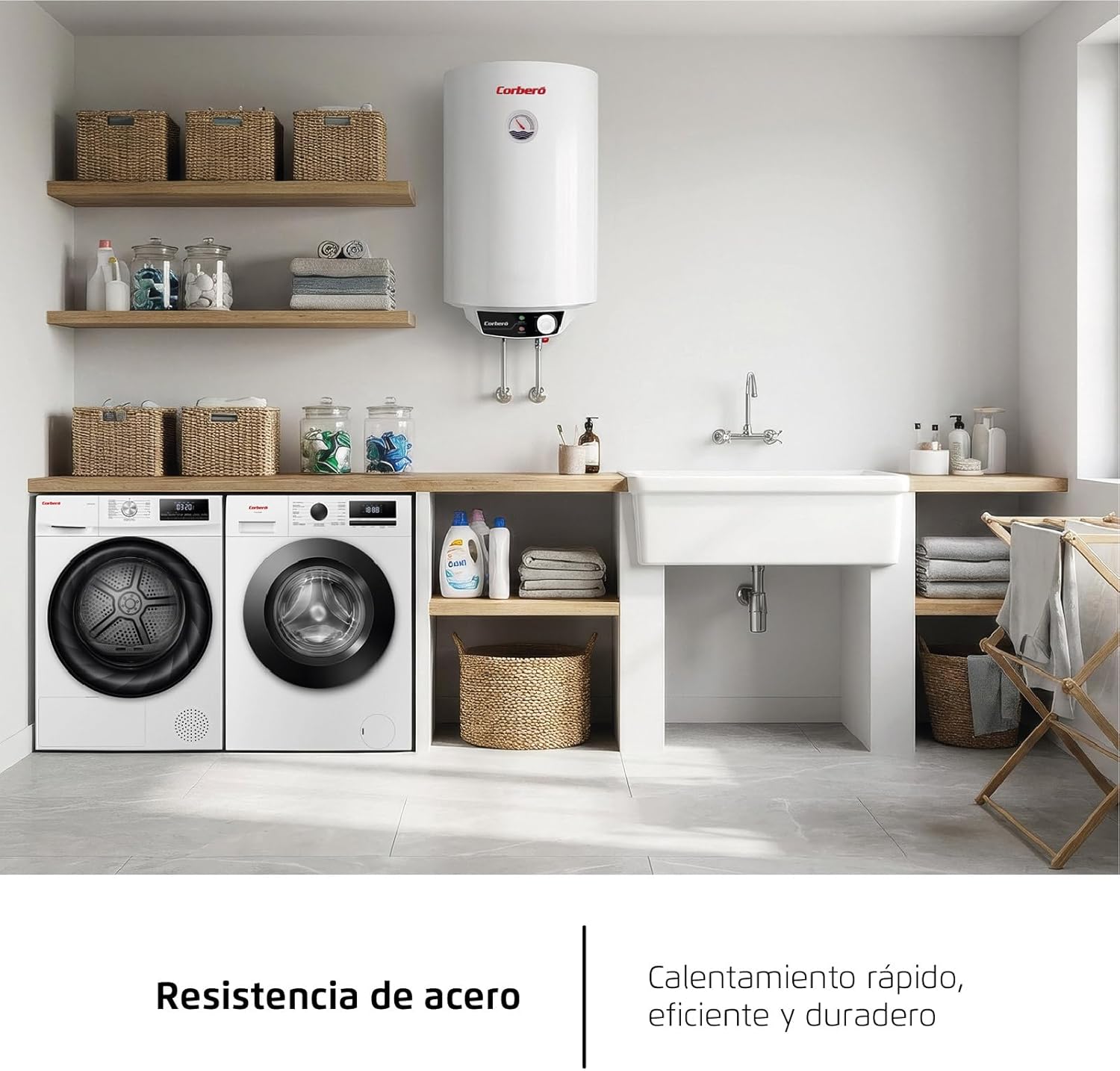 | Corberó CTWB150 | 1500 W | C | 45×122 | 36,4 kg | Vertical mural | 75 °C | Tanque esmaltado + ánodo magnesio | Termostato regulable + termómetro ext. | Desconexión auto. sobrecalent./presión |
