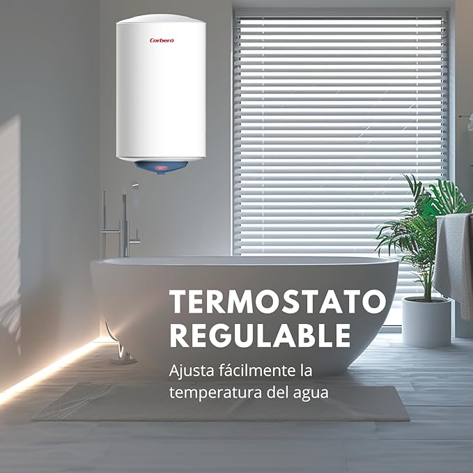 Una de las características destacadas del Corberó CTMBA80 es su resistencia blindada, que proporciona una mayor durabilidad y eficiencia en el calentamiento del agua. Esta resistencia, en combinación con un termostato regulable, permite ajustar la temperatura del agua a conveniencia del usuario, contribuyendo no solo al confort, sino también a la eficiencia energética. Con una clasificación de eficiencia energética C, este termo busca minimizar el consumo eléctrico, logrando un balance entre el confort y la economía en la factura energética.